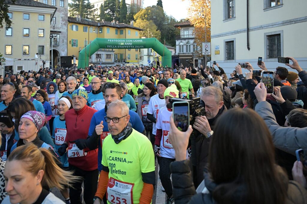 UDINE, 1 dicembre 2024 – La 26esima Staffetta Telethon ha riscosso un enorme successo, coinvolgendo oltre 22.000 persone, tra cui 870 squadre che si sono sfidate in una gara all’insegna della solidarietà. L’evento, che si è svolto dal pomeriggio di sabato 30 novembre alla stessa ora di domenica 1 dicembre, ha visto la partecipazione anche di 1.500 studenti nella Staffetta Giovani, che ha dato il via alla manifestazione. Questo impegno ha permesso di sostenere la Fondazione Telethon per la ricerca scientifica sulle malattie genetiche rare.