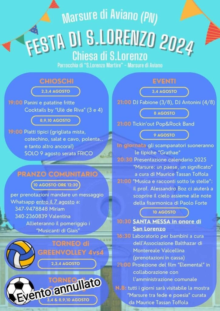A Marsure di Aviano la Festa di San Lorenzo 2024: il programma eventi