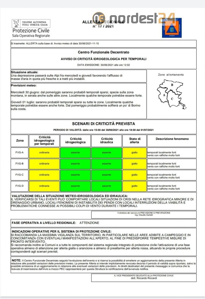 Per maggiori dettagli sull'allerta invitiamo a scaricare il documento di allerta: https://www.protezionecivile.fvg.it/it/allerte