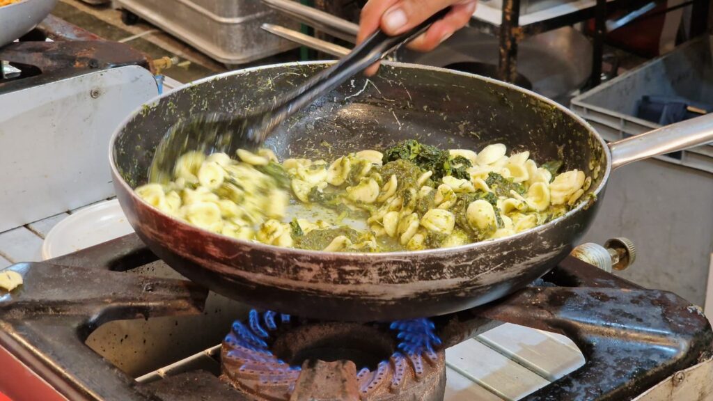 Nel Vicolo del Coregolo, è sorta una rappresentazione vivida di un villaggio pugliese. Gli organizzatori hanno ricreato un'atmosfera che riflette le tradizioni e i sapori autentici della Puglia, con stand decorati dai famosi trulli di Alberobello. L'evento non solo esalta la cucina regionale ma anche l'arte del design e della presentazione, curando minuziosamente ogni dettaglio.