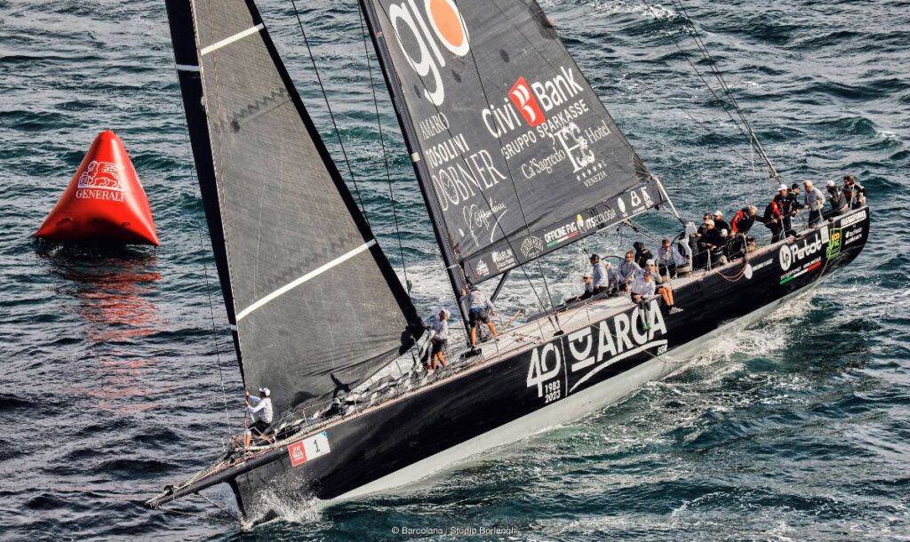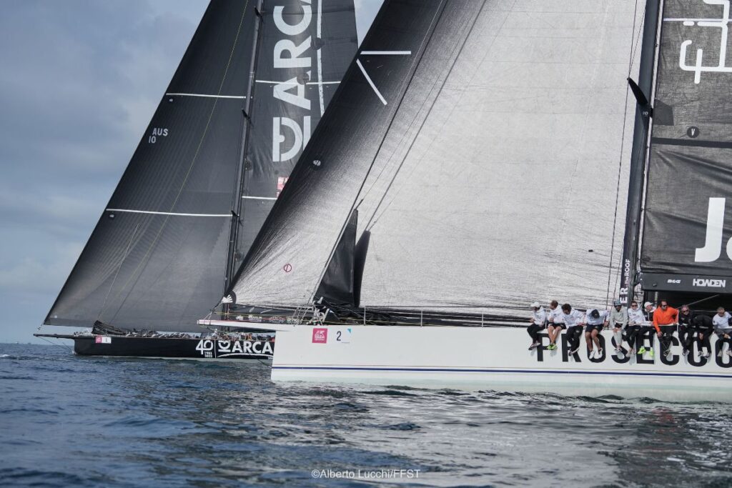 Gran parte della regata è stata impostata da Arca SGR tenendo d’occhio il più pericoloso degli avversari, il maxi Prosecco DOC – Shockwave 3, armato da Claudio Demartis e Pompeo Tria con Mitja Kosmina al timone. Nei primi metri, Shockwave 3 ha dimostrato un’ottima velocità. Tuttavia, la rotazione del vento verso destra, letta in anticipo dall’afterguard di Arca SGR, composto da Lorenzo Bressani e Gabriele Benussi, ha permesso a Furio Benussi di iniziare a costruire un buon margine di vantaggio, arrivando indisturbato alla prima boa.