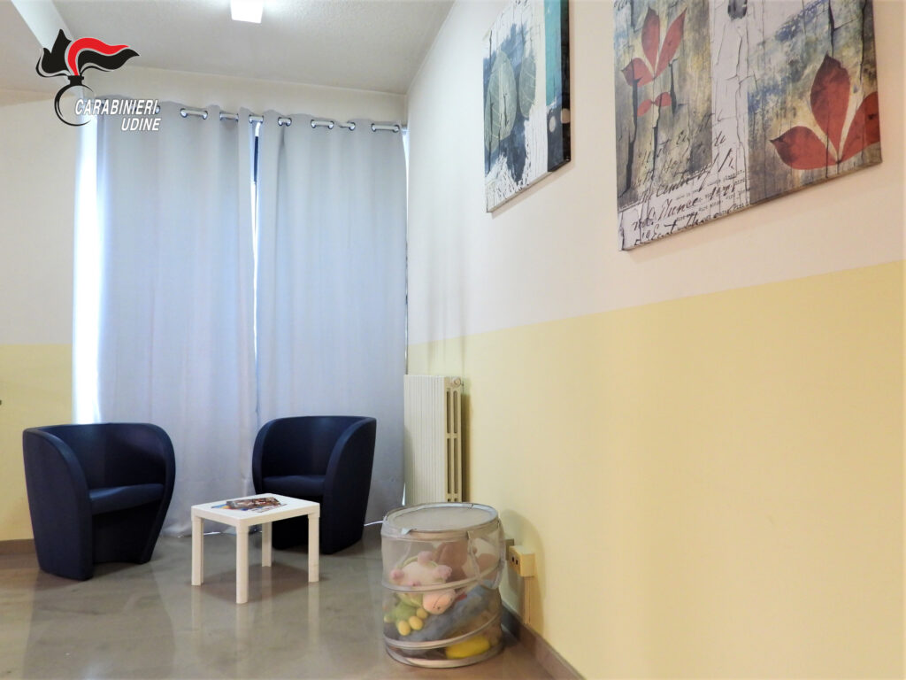 Da qualche tempo, anche il Comando Provinciale Carabinieri di Udine si è dotato della “Stanza tutta per sé”, allestita dal Soroptimist di Udine, per offrire un ambiente protetto e incoraggiante che aiuti la vittima a raccontare aspetti intimi della sua sofferenza, che la faccia sentire accolta e ascoltata, e che le faccia percepire l’attenzione che si ha per i suoi gravi problemi. In una parola, un luogo più umanizzato.