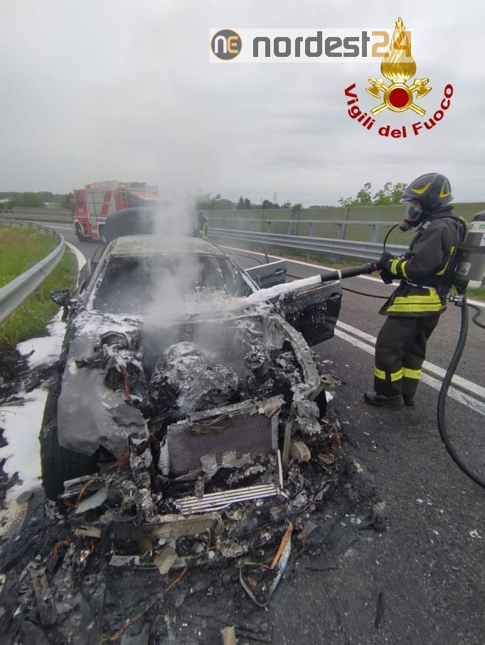 Qualche minuto prima delle 10.40 del 27 luglio 2021 la prima squadra della sede centrale dei Vigili del fuoco di Udine è intervenuta sull'autostrada A23 dove sulla rampa di uscita del casello di Udine nord una vettura aveva preso fuoco.