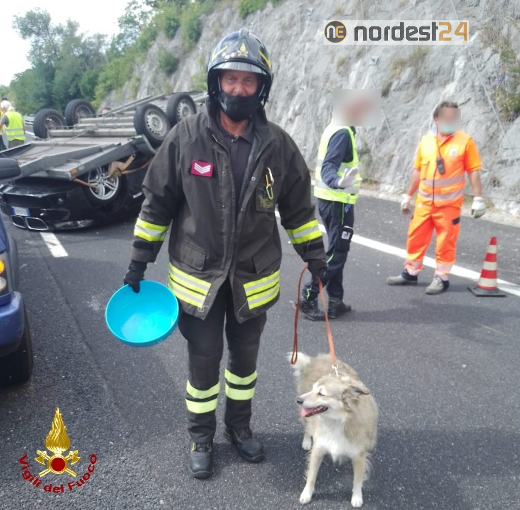 Il conducente con cane al seguito interessato nel ribaltamento del mezzo è uscito autonomamente ed è stato preso in carico dai sanitari del 118, mentre i rilievi sono stati eseguiti dalla Polizia stradale.