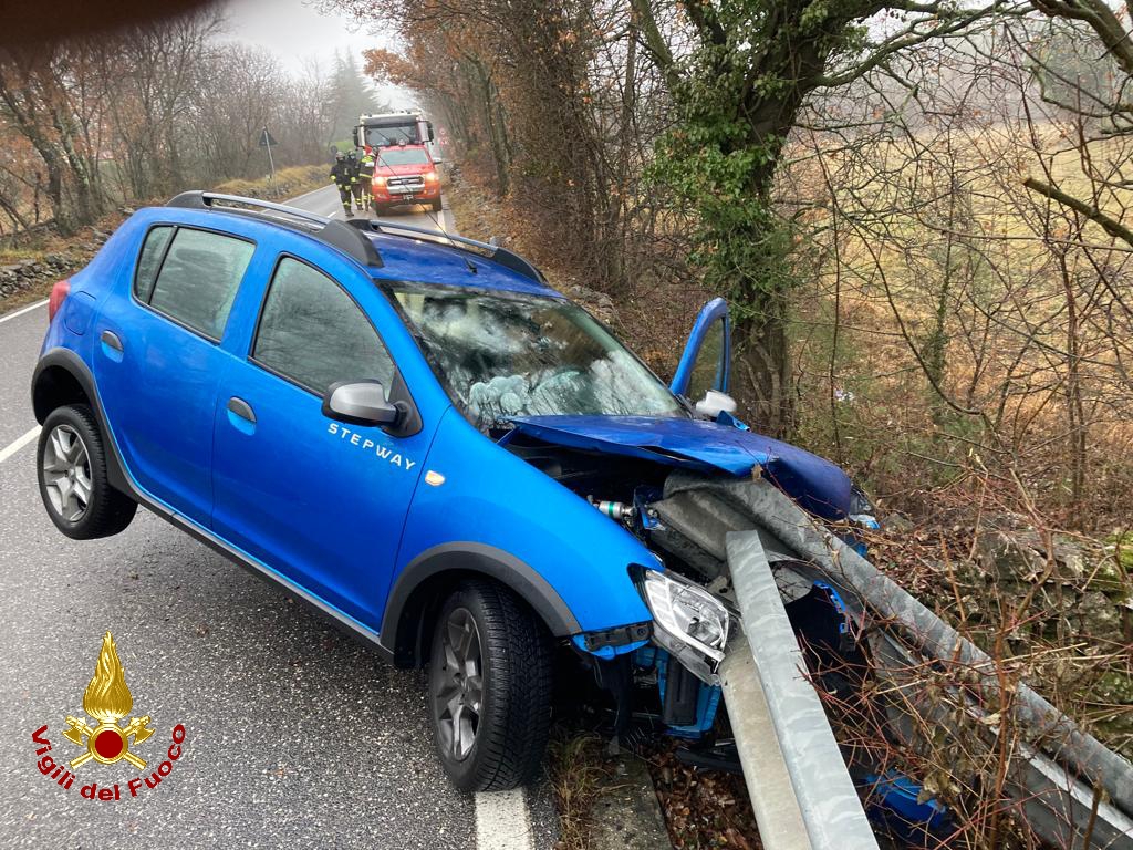 Auto contro il guard rail che si infila nell'abitacolo: ferita -