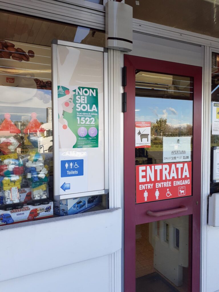 In occasione della Giornata internazionale per l'eliminazione della violenza contro le donne, Autostrade Alto Adriatico ha lanciato una campagna di sensibilizzazione sulle sue tratte, visibile in 142 piste di pedaggio, 16 aree di servizio e nei 4 Centri di Assistenza Clienti (Cac), ubicati a Duino Sud, Palmanova, Latisana e Venezia Est. In queste aree sono stati esposti dei volantini contenenti il segnale di aiuto e il numero di telefono per richiedere soccorso, al fine di sensibilizzare i conducenti sul tema della violenza di genere.