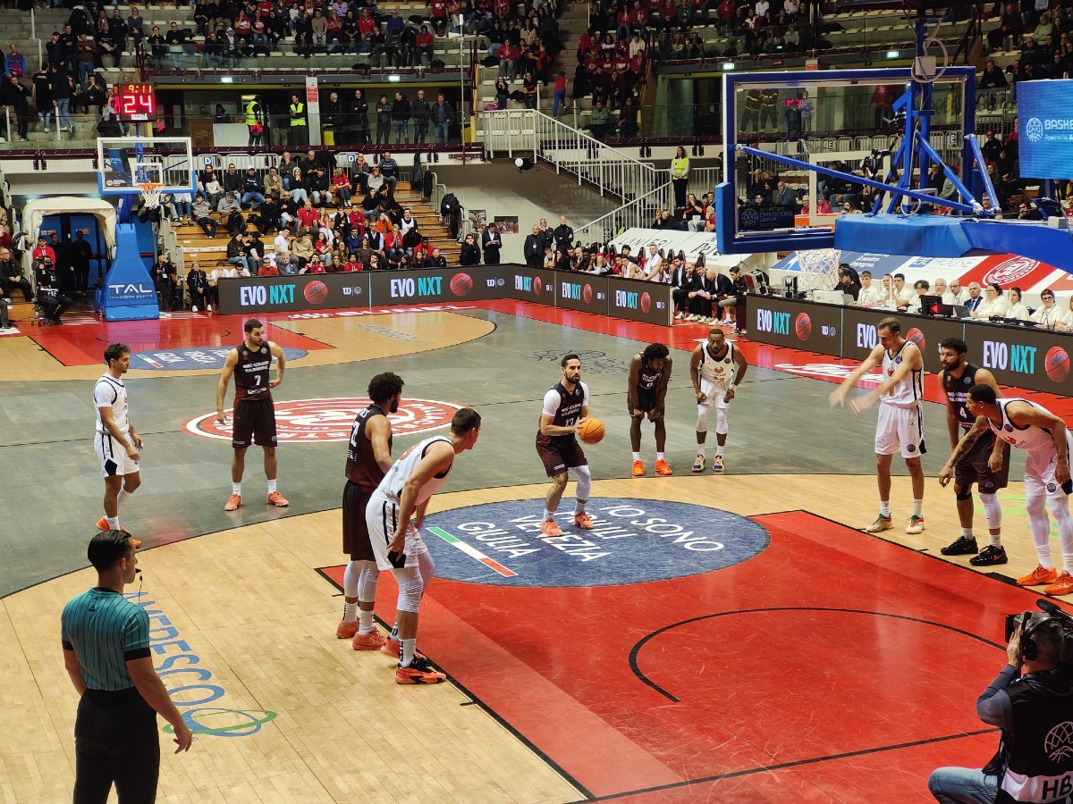 Vrabac affonda la schiacciata su assist di Somogyi, poi Deangeli sul missile di Toscano-Anderson si inventa un canestro da circo e subisce il fallo. "Lodo" è anche glaciale dalla lunetta: il suo gioco da tre punti inchioda il punteggio sul 36-44 a metà partita.