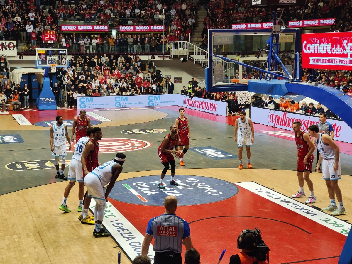 Tripla di Brown dall’angolo poi i giri in lunetta di Visconti e due di JTA: punteggio sul 49-51. Gonzales “getta” l’instant replay per la verifica di un fallo antisportivo che sembrava assolutamente normale (come confermato dai grigi). Un bel canestro di Deangeli in floater riporta Trieste in parità, che prosegue anche dopo il botta e risposta da tre di Zanelli e Ross: 54-54 a 7 minuti e 32 dalla fine. Trieste prova lo strappo coi canestri di Ramsey da sotto e la tripla di Uthoff: 61-57 a 6 minuti e 10 secondi da giocare; time out Mrsic ma Sassari sbaglia ancora: sul capovolgimento la tripla di Ramsey porta i biancorossi sul +7. Reagisce Sassari con Buie (2/2 dalla lunetta) e Thomas da sotto; per Trieste tripla di JTA, ancora errore degli isolani ed altra tripla di un torrido Ramsey: 70-63, che diventa 72-63 per altri due liberi della guardia statunitense. Sul ribaltamento segna ancora Thomas e a 3 minuti a 12 dalla fine il punteggio è 72-65. Importante canestro di Brooks dopo il rimbalzo in attacco e, dopo l’errore di Sassari, JTA dalla lunetta porta il vantaggio di Trieste in doppia cifra 76-65 a 2 minuti e mezzo dal termine. Quando la partita sembra finita, ci pensa Pullen con una tripla che entra a dir poco fortunosamente e Thomas da sotto e riportare i suoi a meno 6: nonostante il ferro sputi fuori la bomba di Uthoff, I sassaresi sbagliano due volte dalla lunga distanza e la partita termina con Trieste a gestire l’ultima palla fino alla sirena finale. Finisce 76-70.