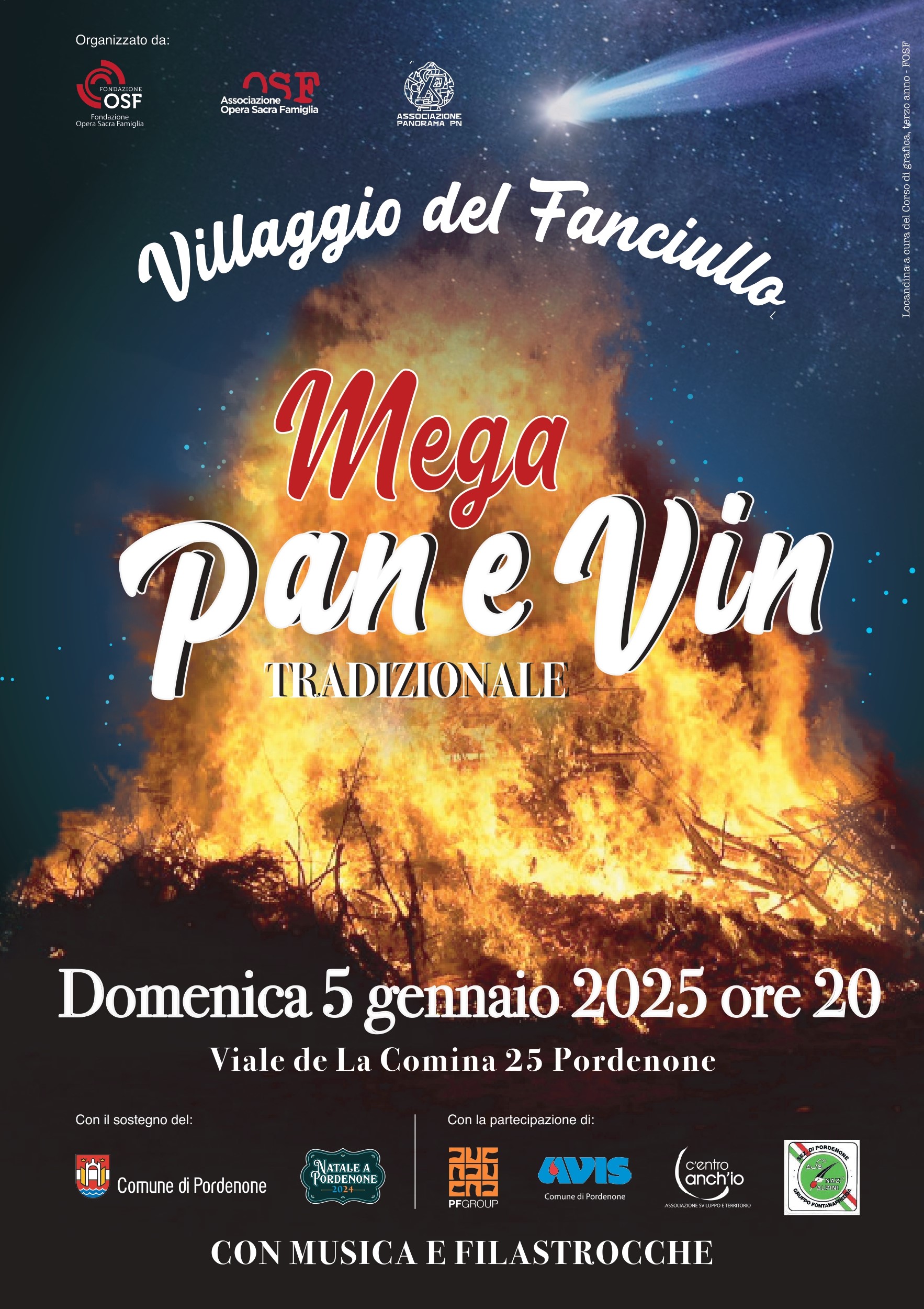 Un altro appuntamento immancabile è il Mega Pan e Vin della Comina, organizzato dall'Opera Sacra Famiglia e dall’Associazione Panorama presso il Villaggio del Fanciullo. Alle 20.00 sarà acceso il grande falò, accompagnato dalle filastrocche tradizionali, musica e dai classici vin brulè e pinsa. Durante la serata, i partecipanti potranno scoprire quale direzione prenderà il fumo del falò, con un tocco di fortuna per il nuovo anno.