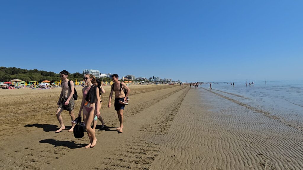Oltre agli sportivi, sono numerose anche le famiglie di turisti, soprattutto stranieri, che hanno scelto Lignano per la prima tintarella e il primo bagno di stagione. Le temperature quasi estive, con giornate soleggiate e cieli tersi, hanno trasformato la località balneare friulana in una vera e propria anteprima d’estate.
