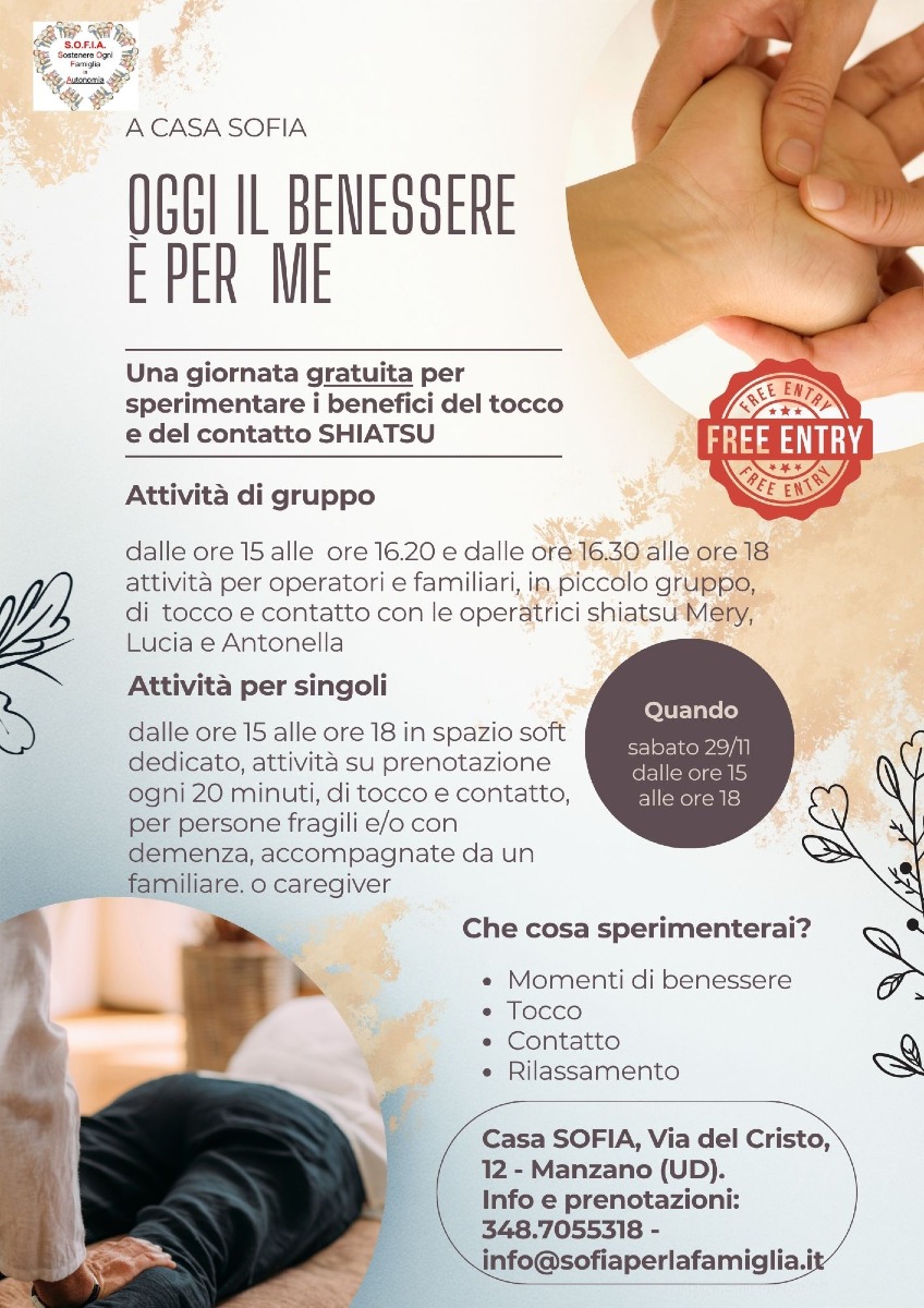 MANZANO (UD) – Un pomeriggio pensato per ritrovare calma, ricaricare energie e avvicinarsi al potere del contatto umano: questo il cuore dell’iniziativa proposta da SOFIA – Sostenere Ogni Famiglia In Autonomia, che porterà nella cornice di Casa Sofia un appuntamento dedicato ad operatori, familiari, caregiver e persone fragili accompagnate dai loro cari.