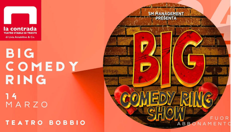 TRIESTE – Il Teatro Orazio Bobbio si prepara ad accogliere una serata all'insegna del divertimento puro il prossimo 14 marzo alle 20.30 con il "Big Comedy Ring Show". Uno spettacolo che vedrà in scena alcuni dei comici più amati dei programmi televisivi più seguiti, come Zelig e Colorado.