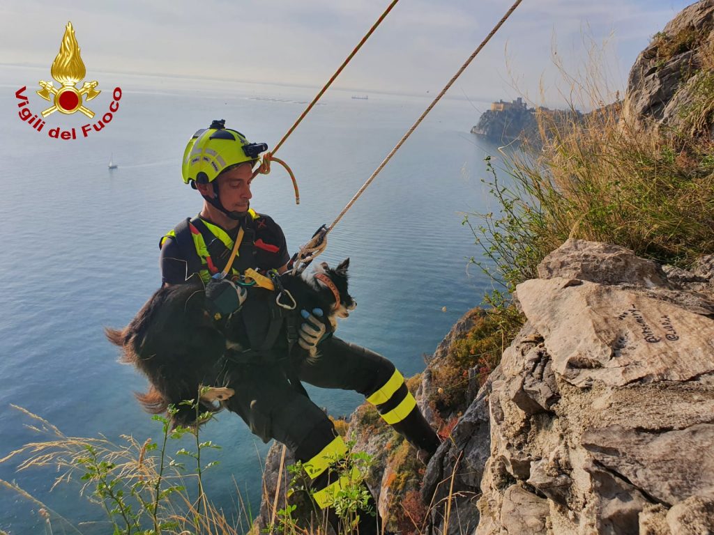 Cade nel dirupo sotto il sentiero Rilke: cane salvato dai pompieri