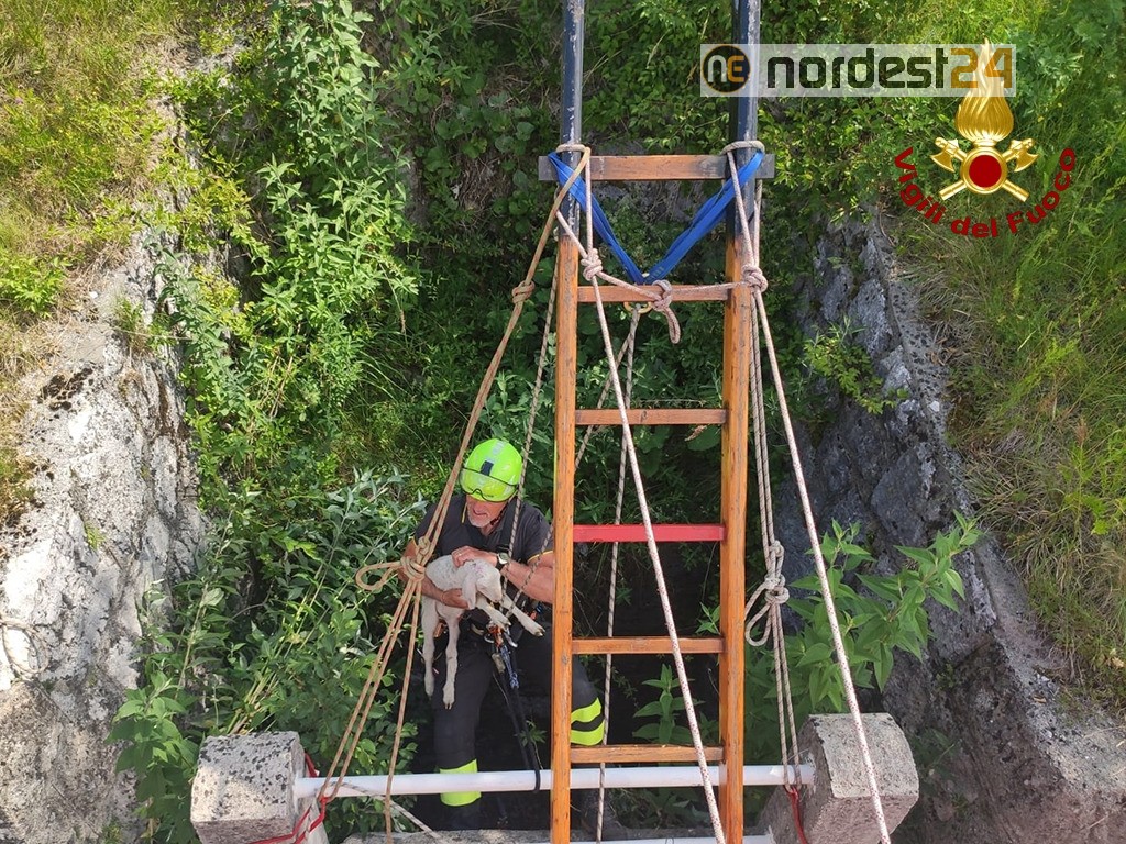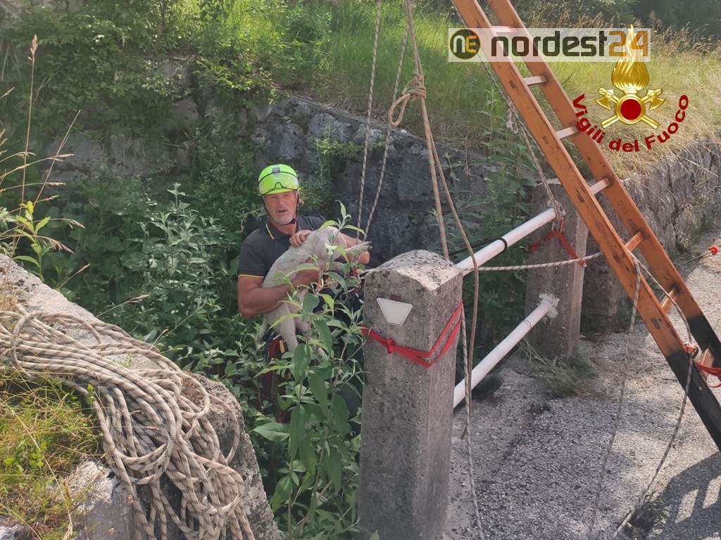 Chiamati dal pastore i vigili del fuoco si sono calati per circa 10 metri raggiungendo l’animale successivamente usando la scala italiana e tecniche SAF (speleo alpino fluviale) hanno recuperando il giovane ovino riconsegnandolo al pastore.