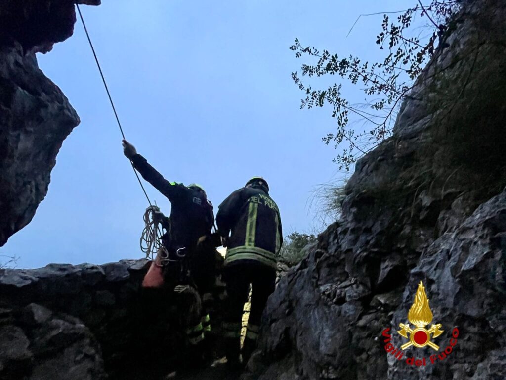 Cade per 15 metri dal sentiero Rilke e rimane bloccato: cagnolino salvato dai pompieri