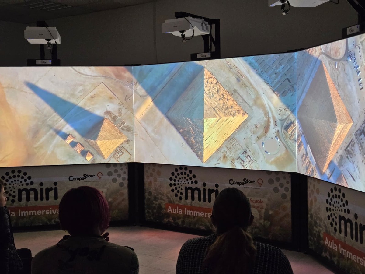 L’aula immersiva consente di vivere lezioni digitali proiettate su tutte le pareti, trasformando l’ambiente scolastico in un luogo interattivo e dinamico. Gli studenti possono esplorare lo spazio, osservare da vicino i fenomeni naturali o addentrarsi in un dipinto rinascimentale, vivendo la didattica come un’esperienza coinvolgente.