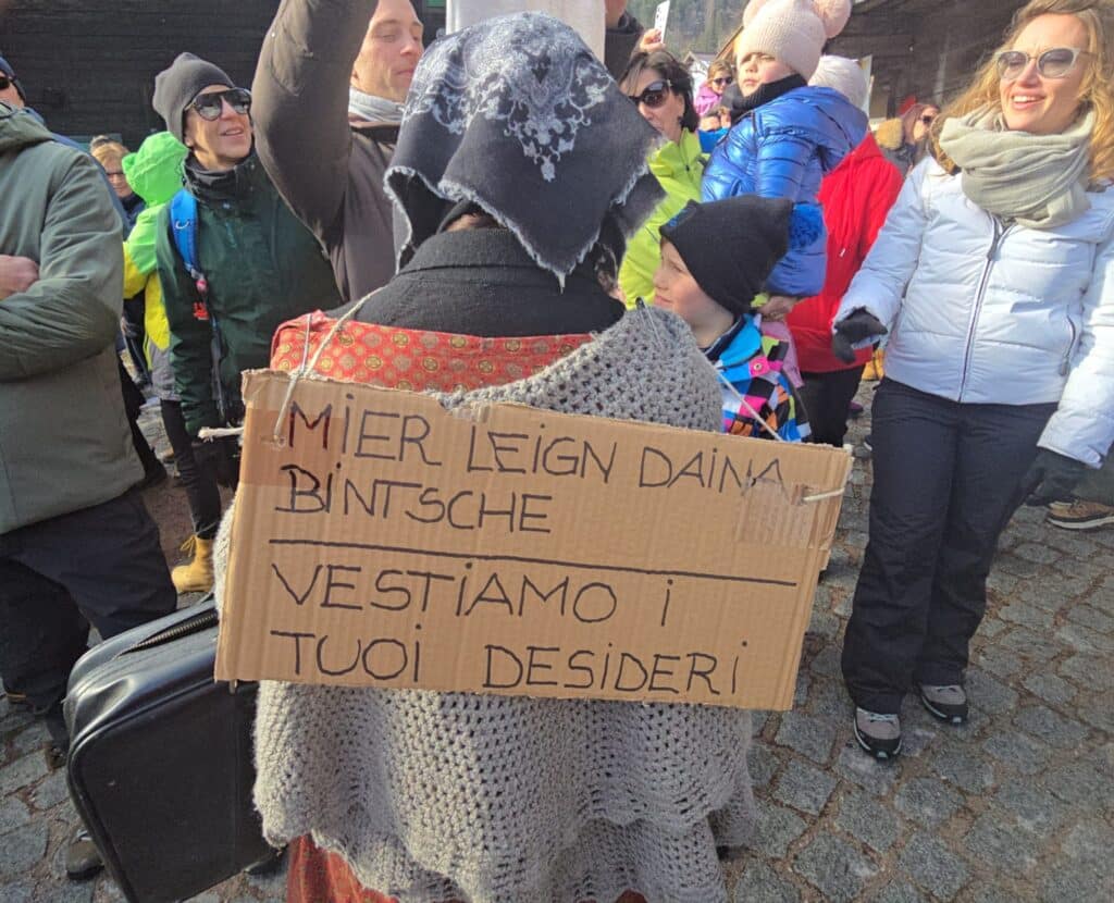 Chi faceva la parodia di qualche cantante di Sanremo, chi, con il cartello affisso in fronte di venditore ambulante, provava a piazzare ai turisti improbabili capi di biancheria intima ai malcapitati, chi si proponeva come badante con varie formule collaborative e tutti in rigorosi costumi dell’antica civiltà contadina, alcuni dei quali originali dell’800, con il volto coperto da una maschera lignea e con la voce il falsetto a schernire i turisti che, in centinaia, hanno affollato al piazzetta di Cima Sappada.