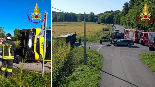 Buia, scuolabus con 30 bambini si ribalta dopo lo scontro con un'auto. Gli aggiornamenti | VIDEO - FOTO