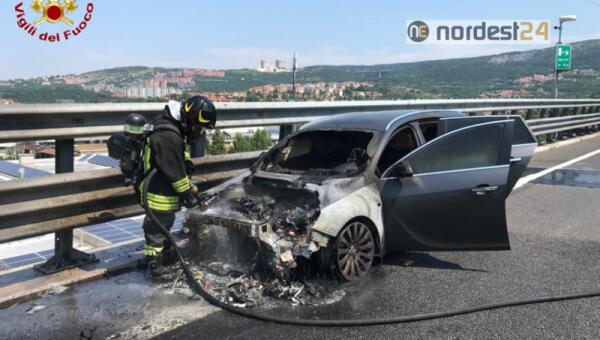 Trieste, incendio di un'auto sulla Grande viabilità all'altezza dello svincolo per Rabuiese