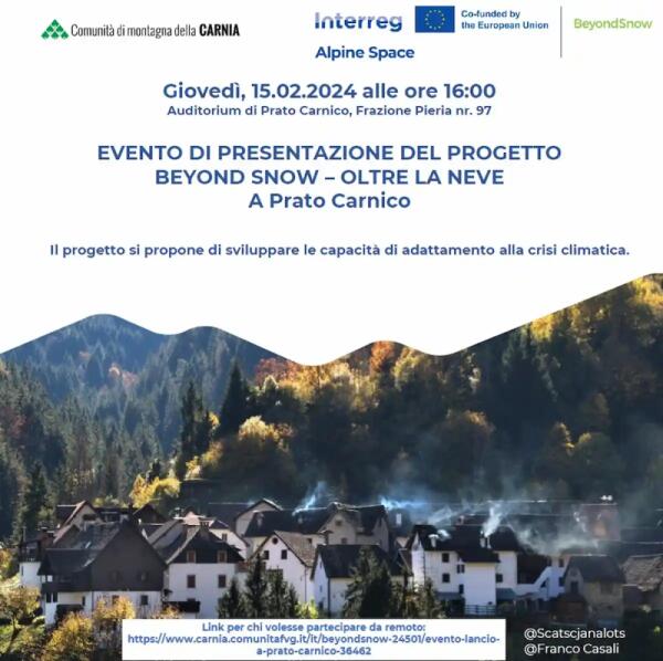 Prato Carnico ospita l'evento di presentazione del progetto "Beyon snow - Oltre la neve"