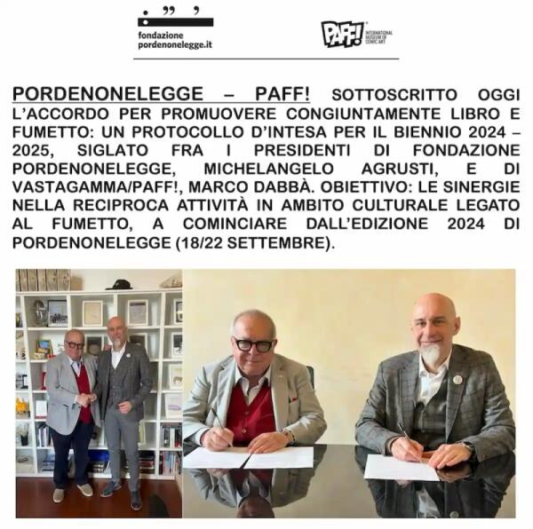 PAFF!, sottoscritto oggi l'accordo per promuovere congiuntamente libro e fumetto