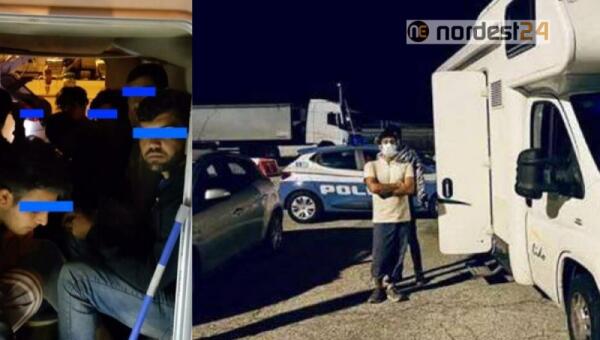 32 clandestini stipati nel camper in A4: arrestati 2 passeur