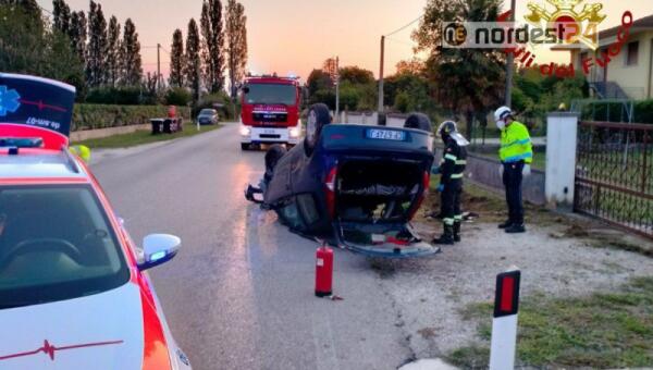 Incidente ad Azzano Decimo, auto finisce ruote all'aria