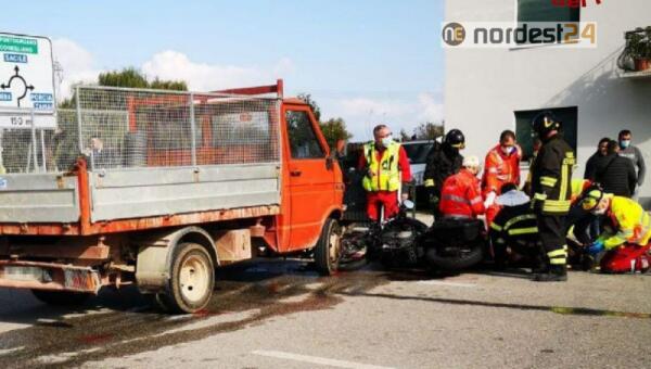 Scontro tra furgone e moto a Tamai di Brugnera: 2 feriti