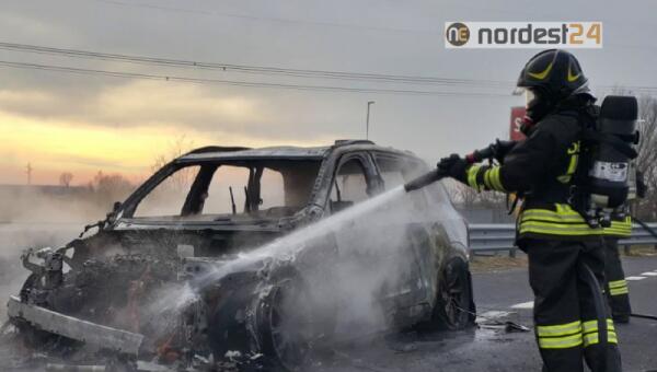 Auto a fuoco in autostrada A28: veicolo distrutto, nessun ferito