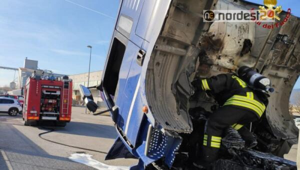 Fontanafredda. Le fiamme si sprigionano dal vano motore del camion