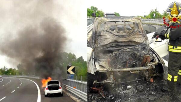 L'auto prende fuoco in A23, il conducente scende appena in tempo