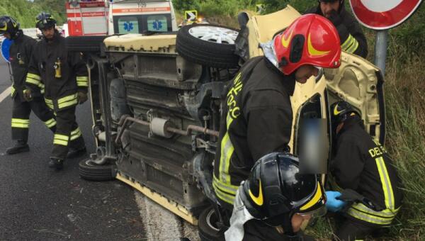 Incidente sul Raccordo Autosradale 13, auto cappottata: ferita una donna