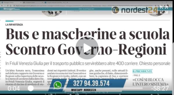 Scuola, nulla di fatto per mascherina e bus. Rassegna stampa 27 agosto