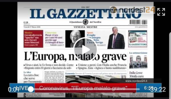 Coronavirus, "l'Europa malato grave". Rassegna stampa 27 marzo 2020
