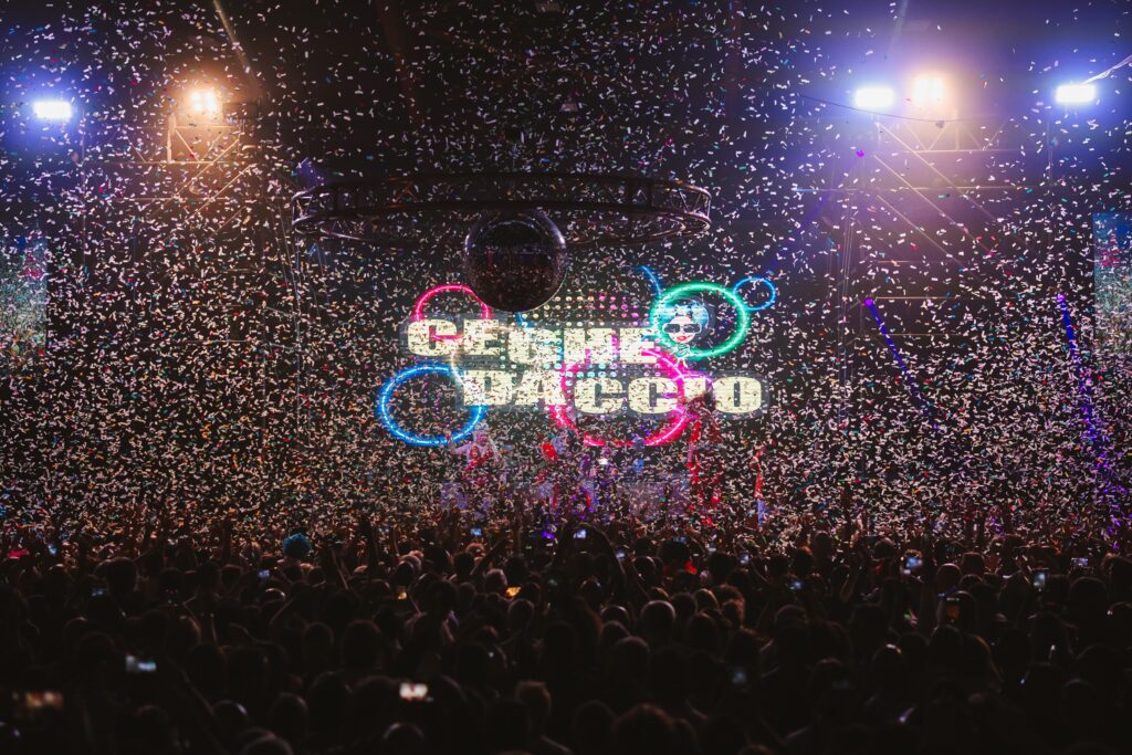 L’evento è iniziato alle 20 e ha proseguito fino all'1.30 del mattino, con un'incredibile produzione scenografica degna di un grande concerto. Dietro la consolle, Renato Pontoni ha suonato dischi in vinile scelti dalla sua vasta collezione di oltre 20.000 titoli, creando un'atmosfera unica e coinvolgente. Gli spettatori sono stati travolti da effetti speciali, come una pioggia di coriandoli e palloni colorati, e hanno potuto godere di esibizioni live che hanno reso la serata ancora più memorabile.