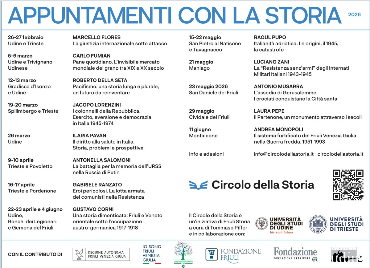 Gli appuntamenti con la storia continueranno poi il 9 e 10 aprile (a Trieste e Povoletto), con Antonella Salomoni che affronterà il tema della battaglia per la memoria dell’Unione Sovietica nella Russia di Putin.