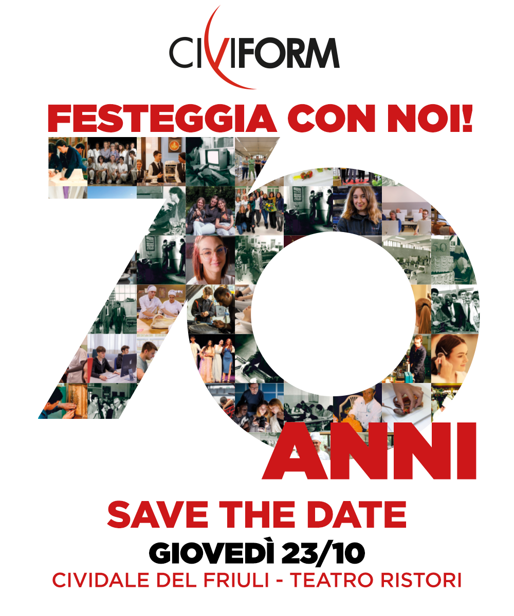 CIVIDALE DEL FRIULI (UD) – Settant’anni di formazione, di crescita e di storie che si intrecciano tra giovani, docenti e imprese. Il Civiform, punto di riferimento regionale nel settore della formazione professionale, celebra nel 2025 il suo 70° anniversario con un grande evento in programma giovedì 23 ottobre a Cividale del Friuli: una giornata di festa, memoria e riflessione che guarda al futuro.
