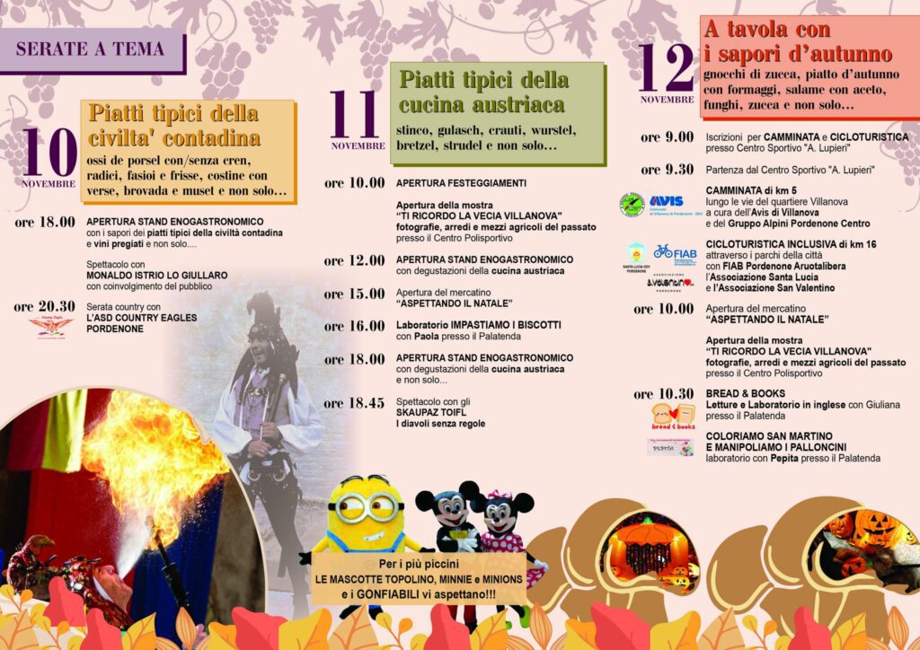 Sabato 11 novembre si svolgerà dello Spettacolo del gruppo Skaupaz Toifl e domenica 12 novembre tanto sport con la Camminata lungo le vie del quartiere e Cicloturistica attraverso i parchi della città di Pordenone.