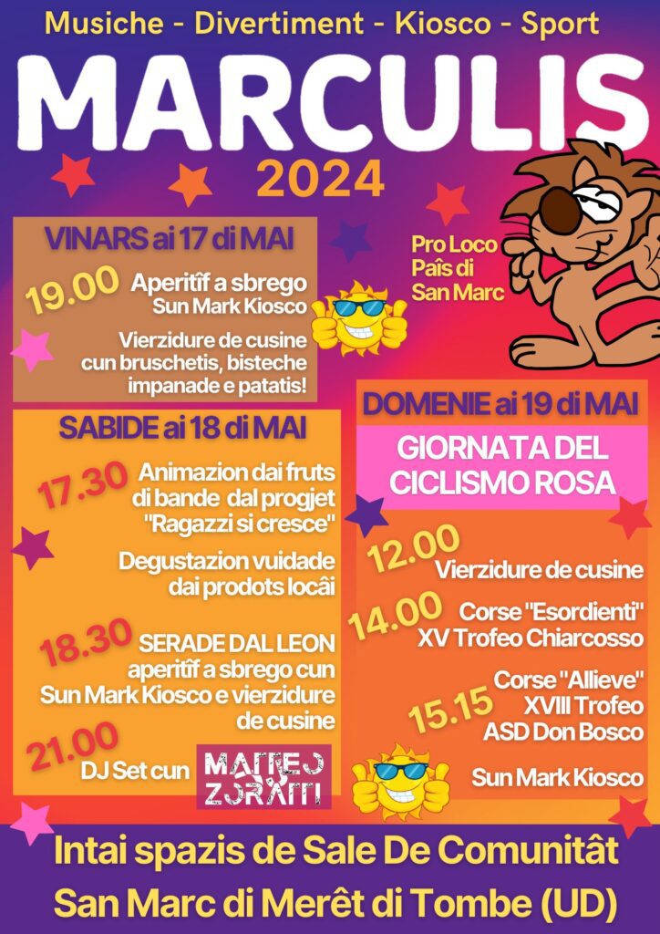 San Marco di Mereto di Tomba (UD) – La festa paesana Marculins, organizzata dalla Pro Loco Paîs Di San Marc, offre specialità gastronomiche come Wienerschitzel e piatti tipici. Un evento che celebra la cucina locale e la convivialità. La sagra è un appuntamento molto atteso dalla comunità, che si prepara con cura per accogliere i visitatori e offrire loro un'esperienza indimenticabile.