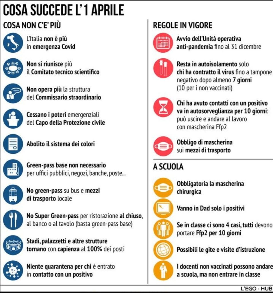 Dal 1° aprile, dopo oltre due anni, termina lo stato di emergenza per il Covid proclamato dal governo Conte il 31 gennaio 2020, e più volte prorogato. Inizieranno quindi a venir meno una serie di obbl...