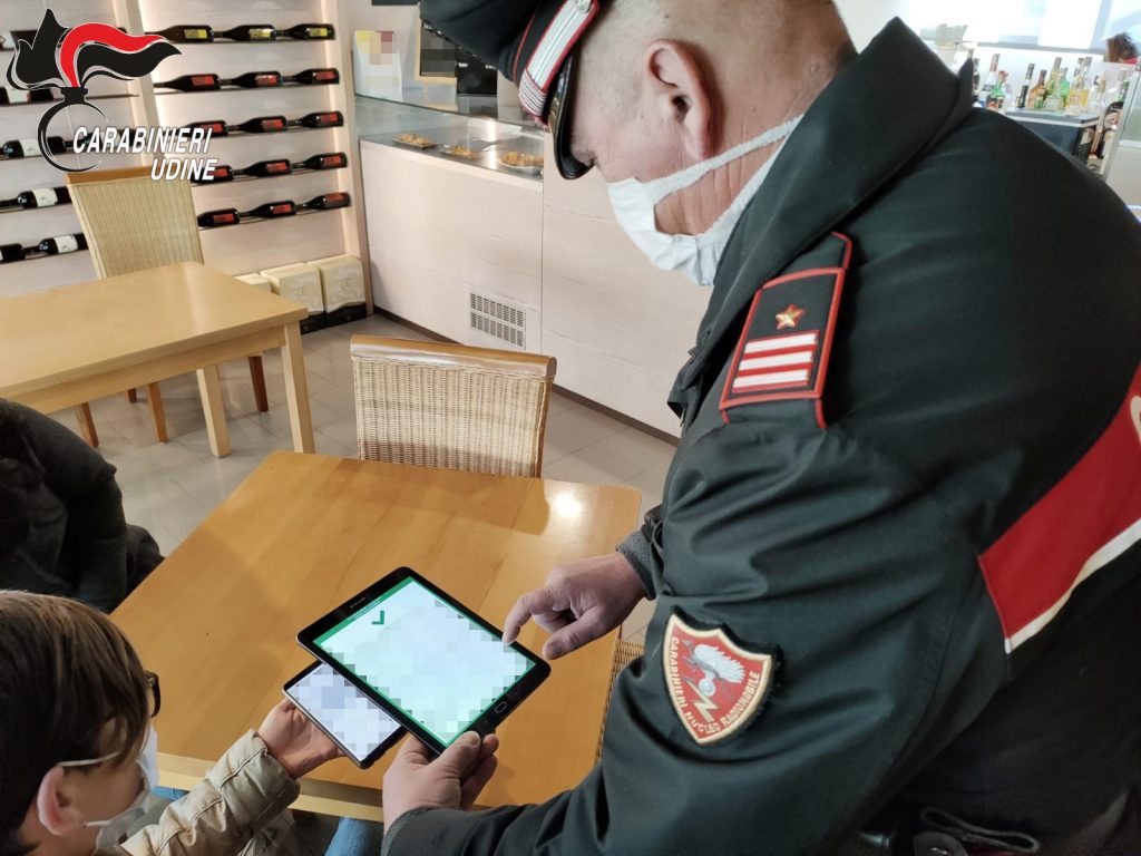 Covid, Green pass: controlli e sanzioni dei Carabinieri in Fvg -