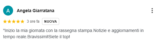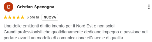 Le parole dei nostri lettori sono il riconoscimento più autentico del lavoro che ogni giorno portiamo avanti sul territorio. In questa sezione raccogliamo tutte le recensioni pubblicate sulla nostra scheda Google, testimonianze spontanee che raccontano l’esperienza di chi ci segue, ci legge e interagisce con la nostra redazione. Ogni feedback ricevuto è per noi uno stimolo a migliorare, crescere e innovare. Grazie a chi ha lasciato una recensione e a chi continuerà a farlo: la vostra voce è parte integrante della nostra storia.