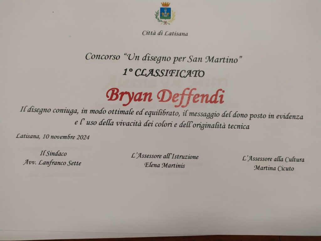 LATISANA – Ogni anno, la Fiera di San Martino accoglie con entusiasmo abitanti e visitatori nelle vie di Latisana, trasformando la cittadina in un grande palcoscenico di tradizioni, arte e sapori. Tra le iniziative più attese, i bambini e i ragazzi delle scuole locali interpretano artisticamente il significato della festa attraverso disegni dedicati a San Martino. Durante l'edizione di quest'anno, si è svolta la premiazione del “Disegno per San Martino”, che viene selezionato per rappresentare la locandina ufficiale della manifestazione dell'anno successivo. Il primo premio è stato assegnato a Bryan Deffendi, il cui disegno ha colpito la giuria per la vivacità dei colori e l’originalità dell’esecuzione, oltre a saper mettere in risalto il valore simbolico del dono.