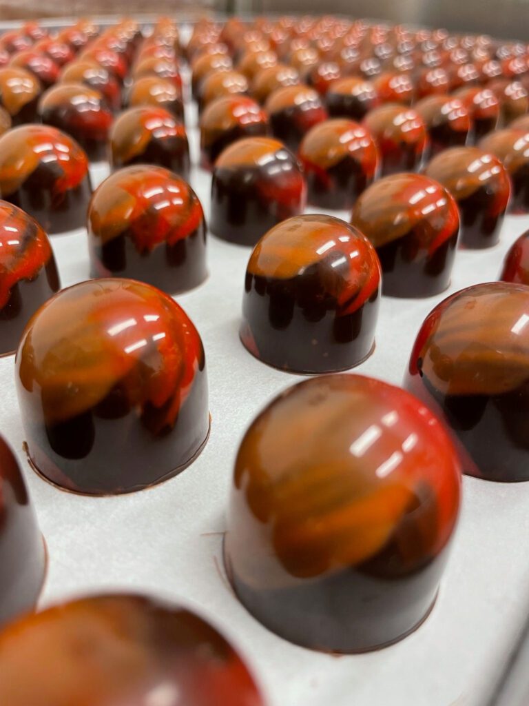 _Udine - Cioccolateria Valentinis: Pralina di cioccolato con ripieno cremoso a base di distillati locali; Liquorino di cioccolato con ripieno liquido a base degli stessi distillati.