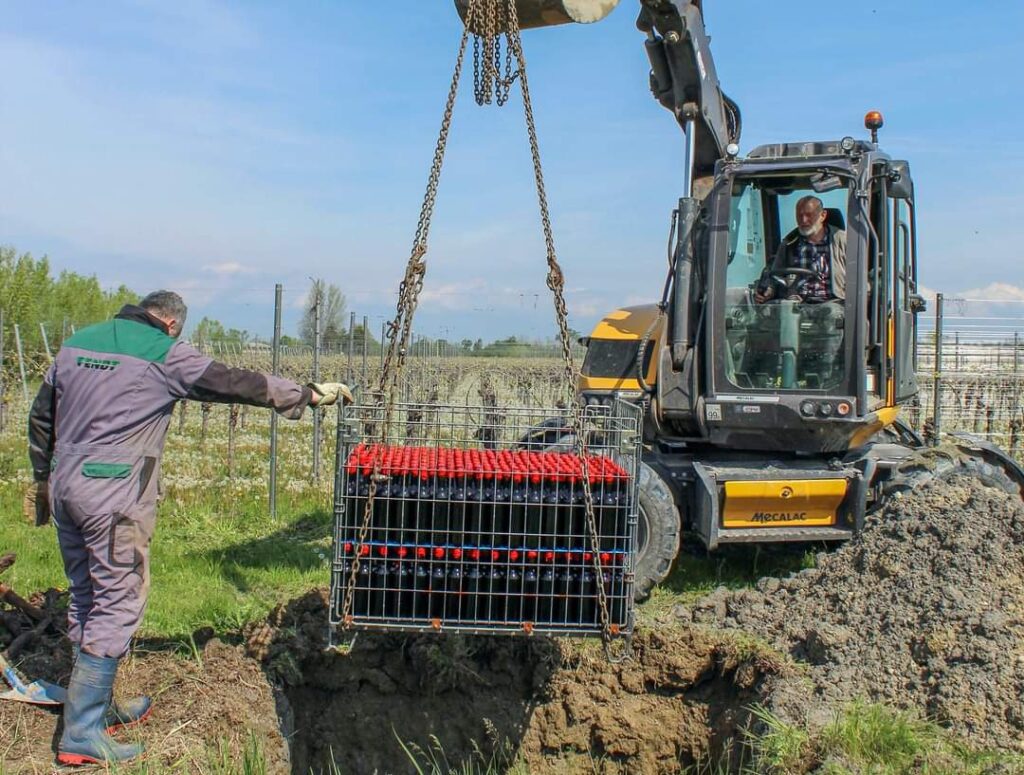 La cantina Vini Ramuscello ha deciso di interrare 555 bottiglie di Refosco dal Peduncolo Rosso Doc Friuli Venezia Giulia, un vino pregiato e ricercato, conosciuto per la sua struttura e complessità aromatica. L'obiettivo è quello di far evolvere il vino per un anno intero, prima di estrarre le bottiglie dalla terra, etichettarle e numerarle.