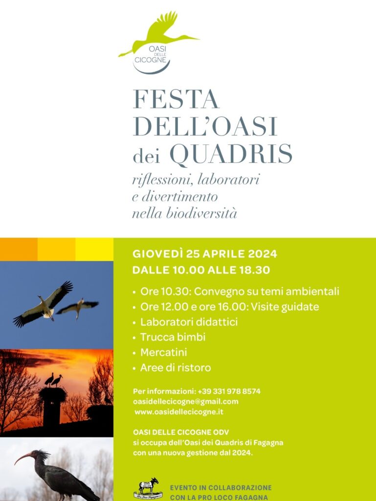 La rinomata Festa dell'Oasi dei Quadris torna per celebrare la biodiversità! Giovedì 25 aprile 2024, l'Oasi delle Cicogne di Fagagna sarà aperta al pubblico dalle 10:00 alle 18:30, offrendo una giornata ricca di attività educative e ricreative.