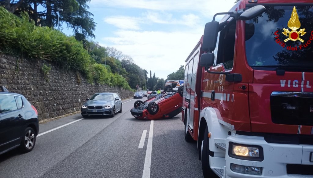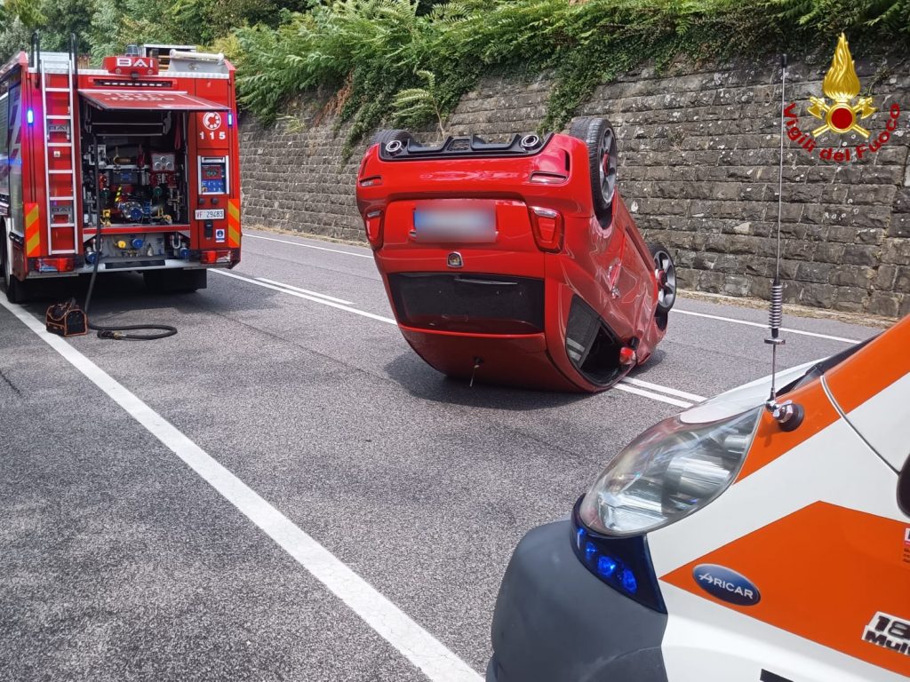 Due auto si scontrano lungo la Strada Costiera, una si ribalta