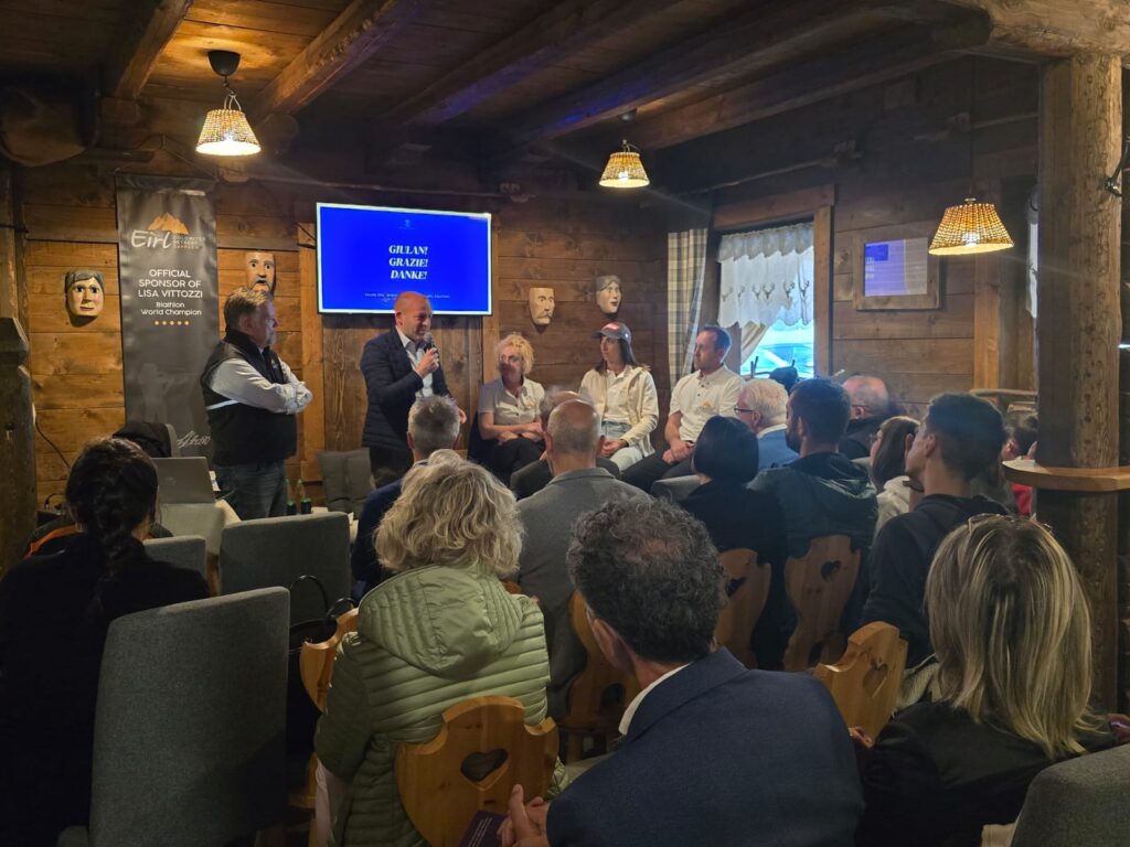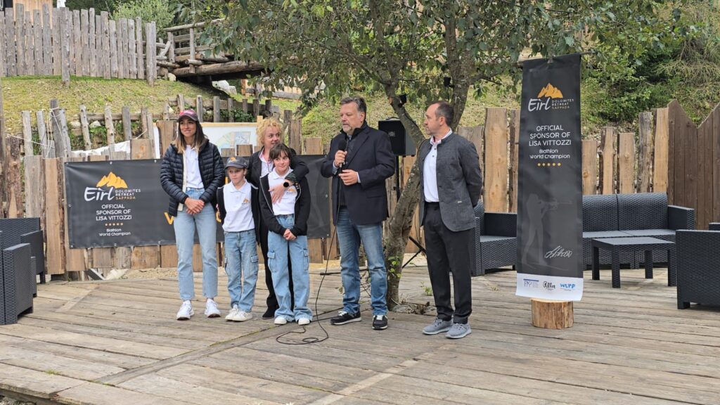 Alla presenza di un ristretto numero di ospiti, tra cui autorità, amici, addetti ai lavori e una rappresentativa della locale associazione sportiva Camosci, Silvia Zambon e il marito Massimiliano Stoffie, titolari del villaggio turistico che si estende su 30 mila metri nella località montana, accompagnati dalle loro figlie Sofia e Teresa, hanno suggellato una collaborazione con la campionessa che li accompagnerà fino alle olimpiadi di Milano Cortina: la nuova testimonial del villaggio sostenibile promuoverà nel mondo l’ospitalità autentica ed esclusiva di Eirl.