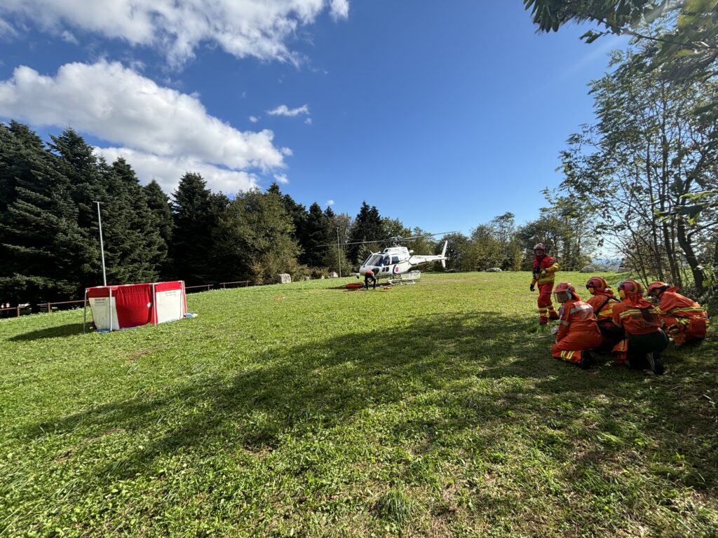 L’elicottero della Protezione civile ha spesso un ruolo di primo piano nello spegnimento dell’incendio. Nell’esercitazione di Aviano, il pilota e il tecnico del mezzo, dopo una rapida ricognizione della zona, hanno portato in quota gli operatori appartenenti alla Squadra intervento in ambienti impervi (SIAI) e i volontari abilitati, successivamente anche l’attrezzatura posizionata in apposite reti agganciate con un apposito cavo al mezzo. Lo stesso, inoltre, pescando l’acqua da un’apposita vasca, ha rifornito vasche più piccole allestite in quota per bagnare il perimetro dell’incendio. Naturalmente, con l’elicottero sono stati realizzati lanci d’acqua sul fronte del rogo.
