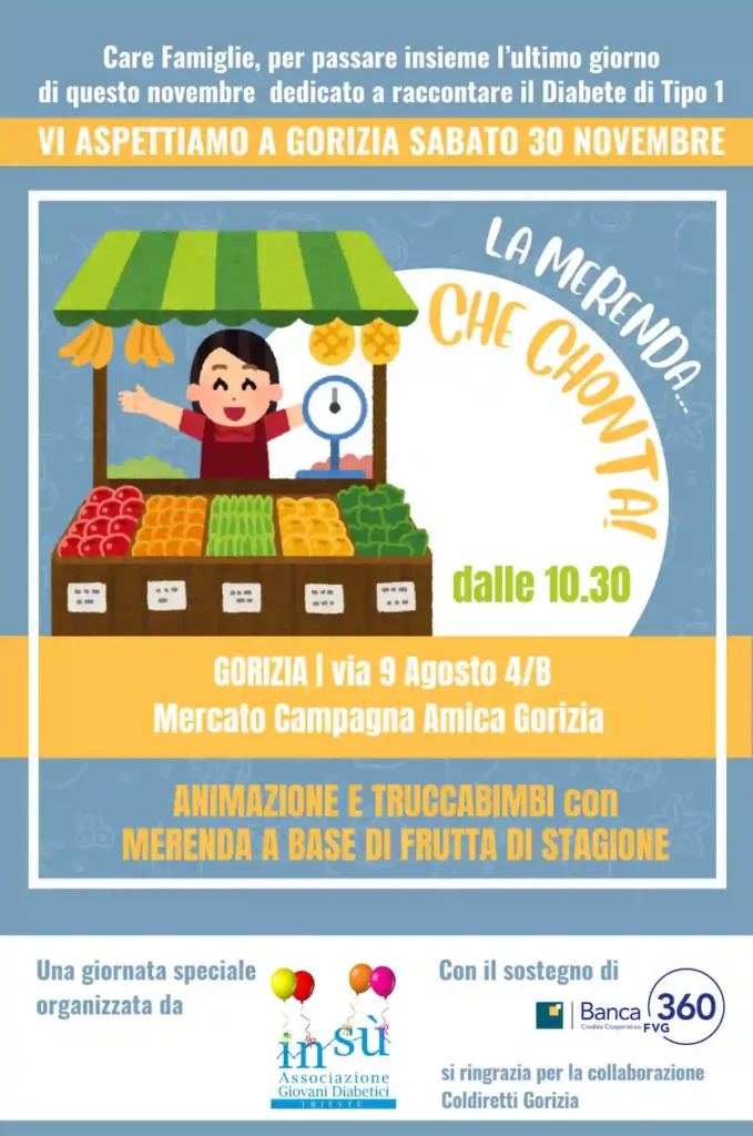 Non mancare quindi a questo appuntamento di sensibilizzazione che si terrà Sabato 30 novembre presso il Mercato Campagna Amica di via 9 Agosto, a Gorizia. Una giornata dedicata all’informazione, alla condivisione e al supporto per tutte le famiglie che affrontano la realtà del diabete giovanile.